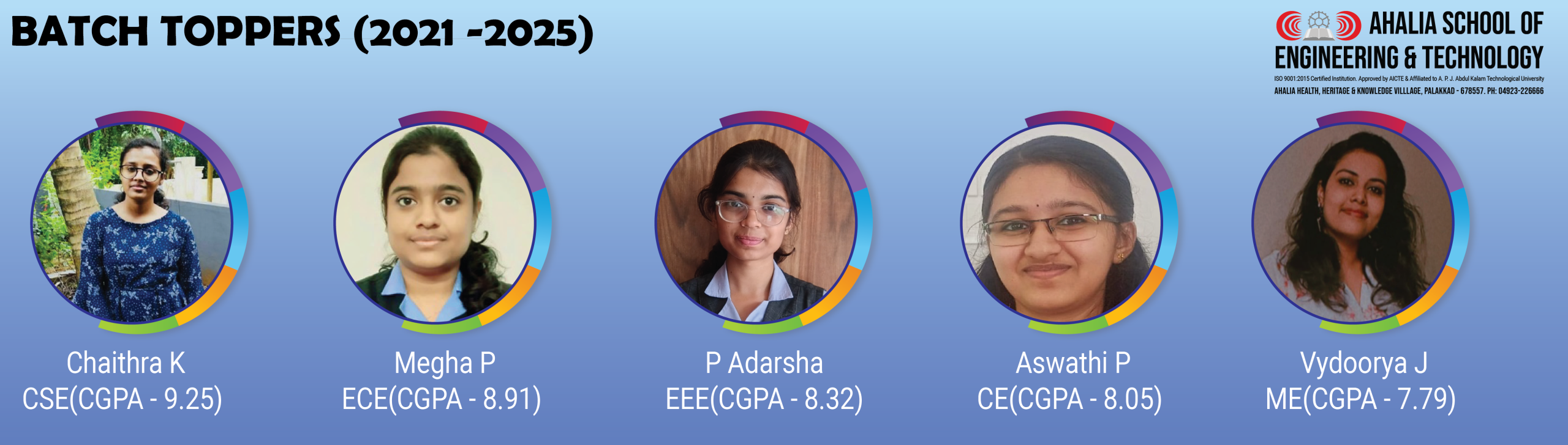 Ahalia School of Engineering & Technology (ASET), Palakkad, an ISO 9001:2015 certified institution, is approved by All India Council for Technical Education (AICTE) and is affiliated to the A. P. J. Abdul Kalam Technological University, Kerala. Read more.
