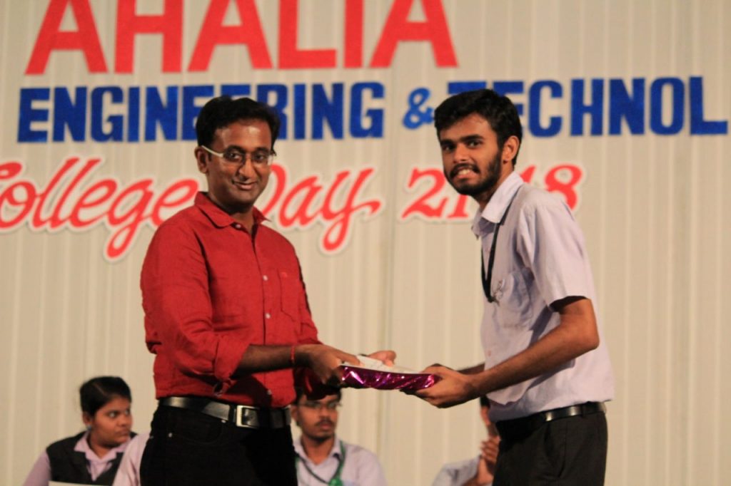 Ahalia School of Engineering and Technology celebrated the college day for the academic year 2017-18 on 16th March 2018. Principal, Dr. B G Vishnuram, presented the annual report showcasing the accolades and recognitions achieved in academics, co-curricular and extra-curricular activities of students and faculties during the academic year 2017-18. Awards were given to the best outgoing students of each department. Felicitation and distribution of certificates of merits were given in due commendation to the students for their outstanding performance in their academics. A magnificent cultural programme was presented by the students of ASET.