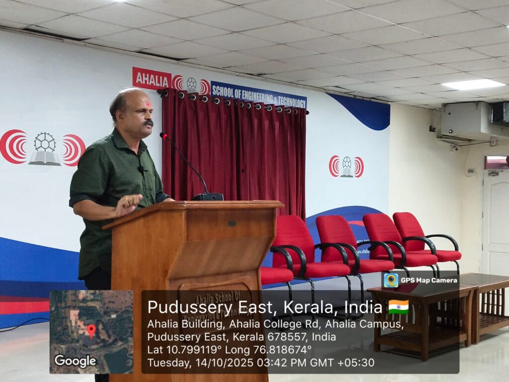 An expert talk on “Statistical Quality Control & Reliability Engineering” was organized on 14th October 2025 at Visvesvaraya Hall, Ahalia School of Engineering & Technology (ASET), Palakkad. The event was conducted as part of the International Day of Standards celebration.