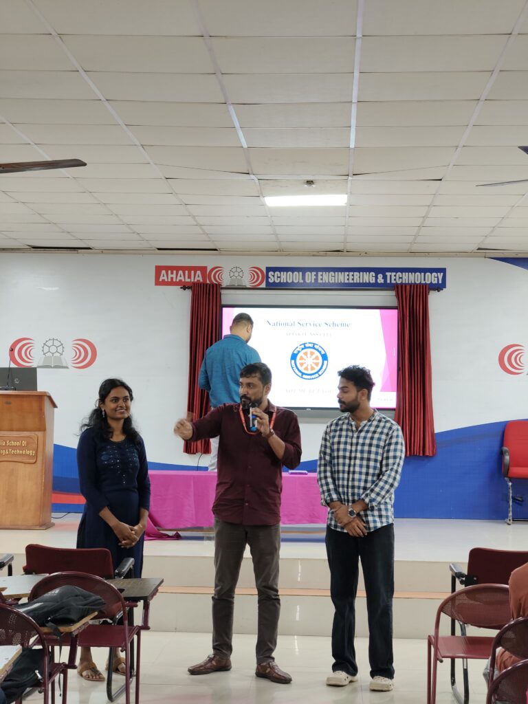 An NSS Orientation Program was successfully conducted by NSS Unit 311 of Ahalia School of Engineering & Technology at the Visvesvaraya Hall on August 2, 2025. The program aimed to welcome new volunteers and familiarize them with the vision and activities of the National Service Scheme (NSS).