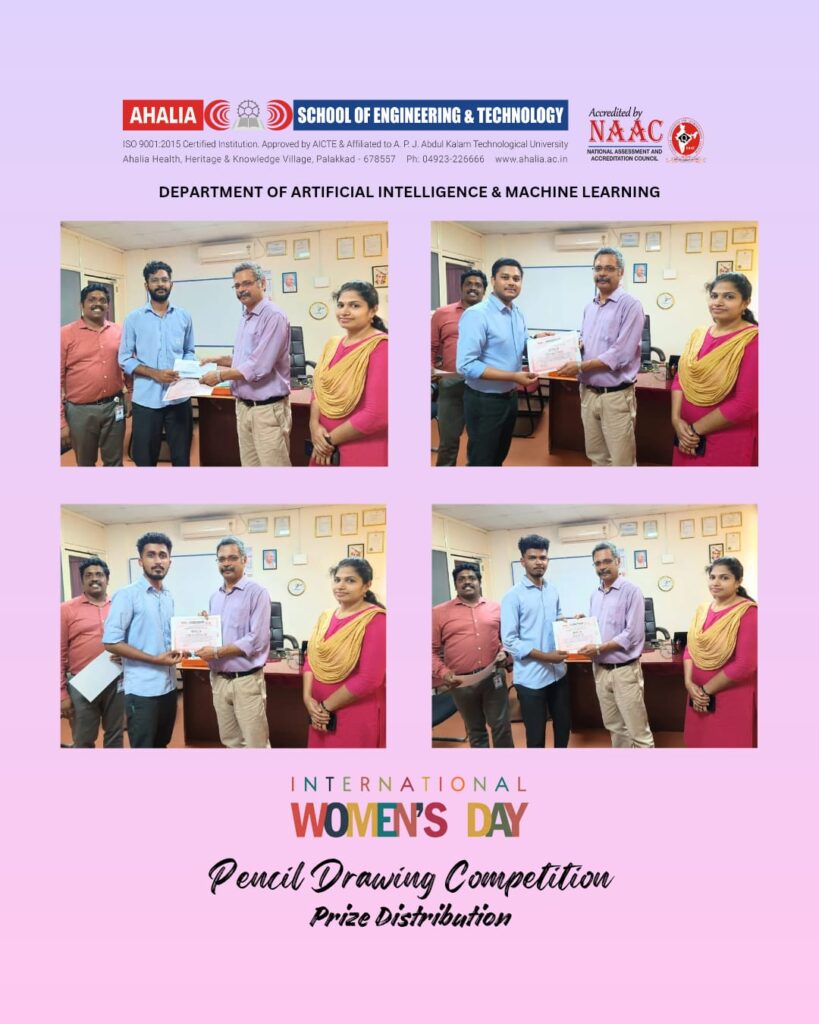 AIML / aiml-achievements Poster Designing & Pencil Drawing Competition admin March 5, 2025 March 20, 2025 The Dept of AI&ML organizes a poster designing and pencil drawing competition in connection with the celebration of International Women’s Day…Shabarinath M, S4 ECE won the first prize.