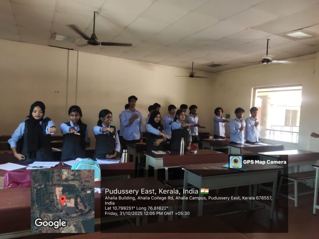 The Rashtriya Ekta Diwas Pledge was observed at Ahalia School of Engineering and Technology on October 31, 2025, to commemorate the birth anniversary of Sardar Vallabhbhai Patel. The event aimed to promote unity, integrity, and national security among students. Faculty members and students enthusiastically took part in the pledge, reaffirming their commitment to preserving the nation’s unity and harmony.