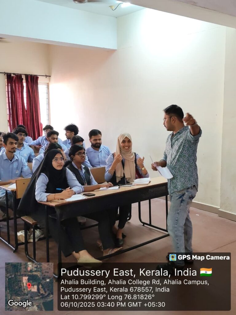 A two-day workshop on Machine Learning was organized by the ASTRA–AIML Association for the students of the Department of Artificial Intelligence and Machine Learning at Ahalia School of Engineering and Technology (ASET). The workshop was conducted on 6th and 7th October 2025 in the AIML S3 classroom from 9:00 AM to 4:15 PM.